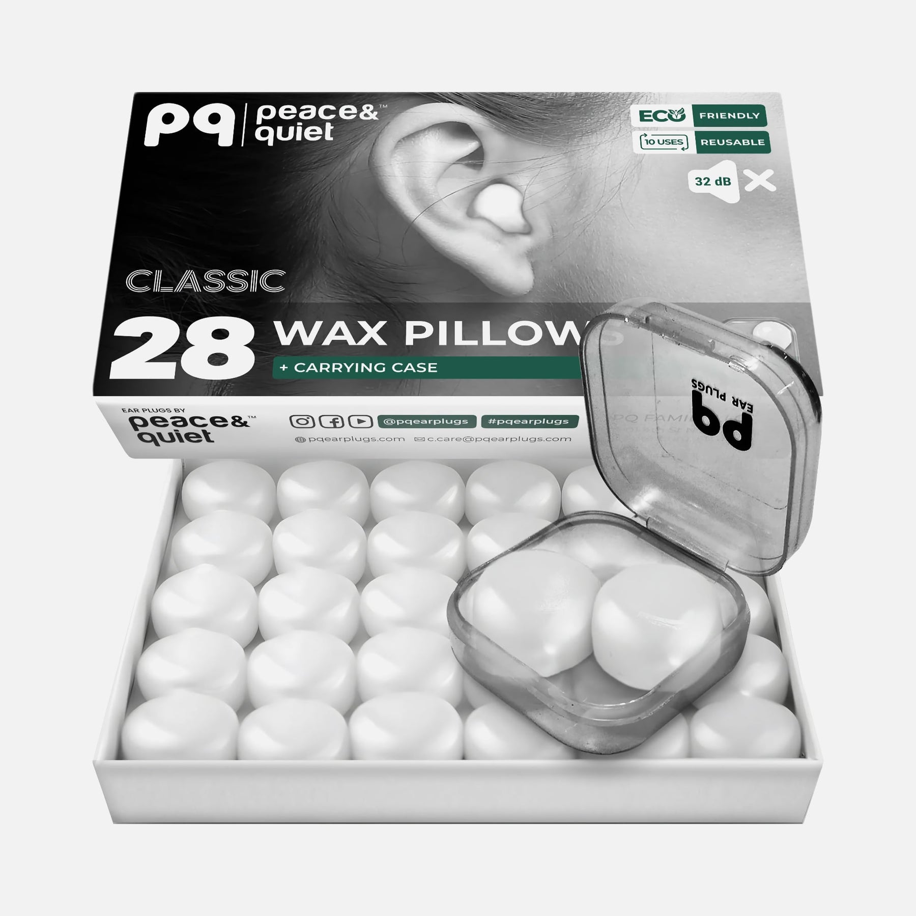 每盒含 28 颗蜡塞,可分半使用,最多可达 280 次使用量,并附带便携收纳盒,保持耳塞清洁,随时可用。
